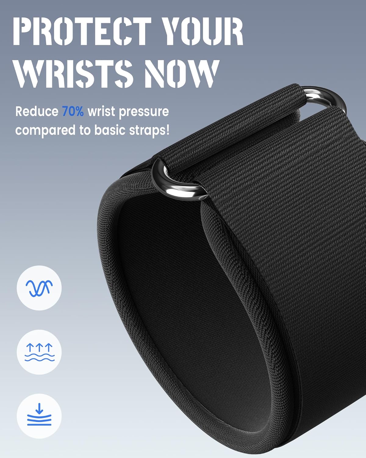 Thick, padded wrist supports with adjustable hook-and-loop closures provide a secure, custom fit. Designed to minimize wrist strain and maximize comfort, these straps let you focus on your workout, not your grip fatigue.